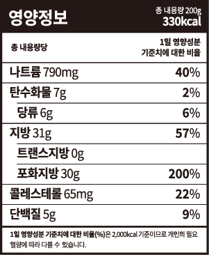 가공유크림(프랑스산:유크림,카라기난), 정제수, 새송이버섯(국산), 양파(중국산), 양송이버섯(국산) *밀, 우유, 대두, 닭고기, 이산화황 함유